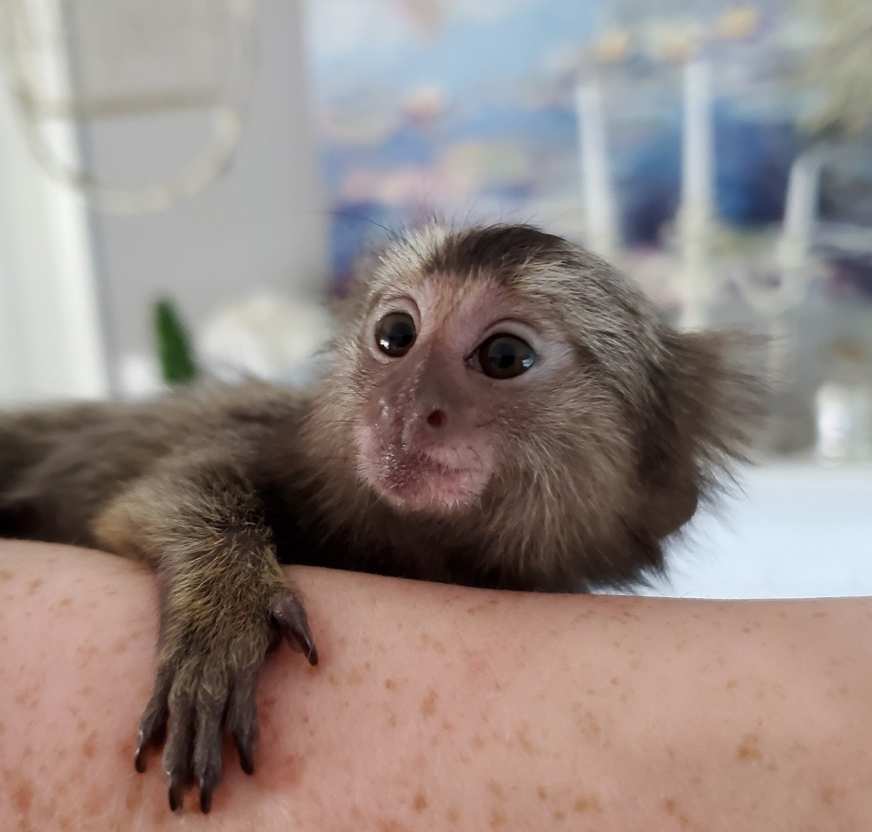 We are busy doing maintenance work on the cages, like everything else the enclosures need the greenery thinning out. Our marmosets like to forage and hide, but I like to be able to see where they are and do a head count while feeding them. Elsa (the little lady in the photo above) is living in our morning room at the moment and has become part of the family, she loves to play peek a boo and call out to the dog, and when the cat falls asleep on the windowsill next to her cage she pulls his tail! Honestly Max , our cat, is so laid back he just opens one eye and moves his tail away from her then goes back to sleep. He must have marvelous blood pressure, definitely no stress in his world! For those of you who follow us on Instagram, Facebook and visit our website from time to time, if you are thinking of becoming a Marmoset parent a good place to start is to do your research in to them, make sure you have the time and commitment to making sure its right for you and complete your Fish and Wildlife application for your permit. So many people don't realize they need one, only to be disappointed at the wait time to receive it. Hope you enjoy our pictures. 😊